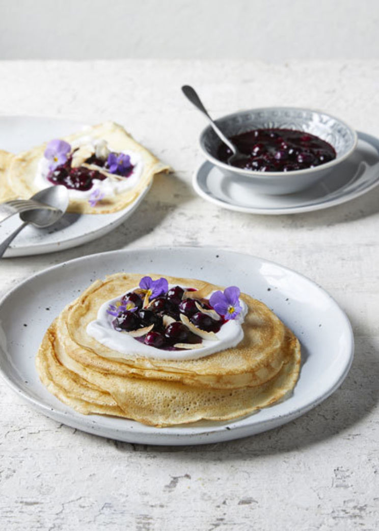 Crepes with blueberry sauce