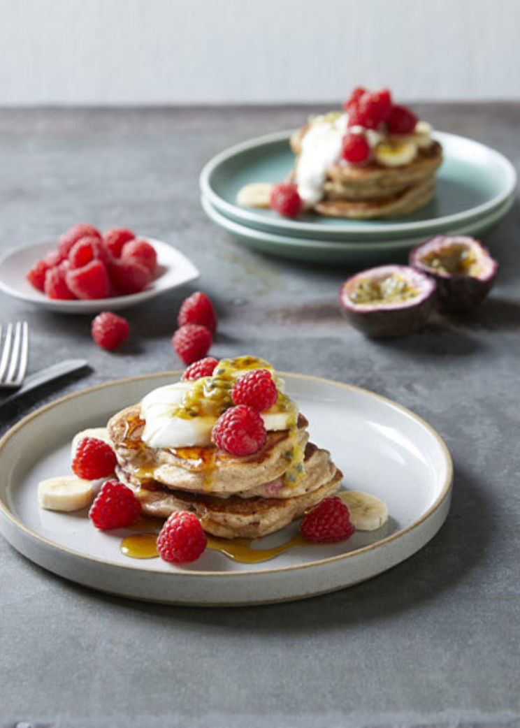 Banana & raspberry pancakes