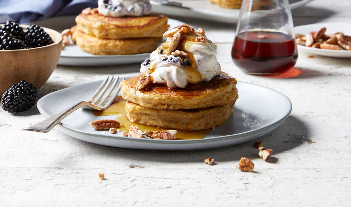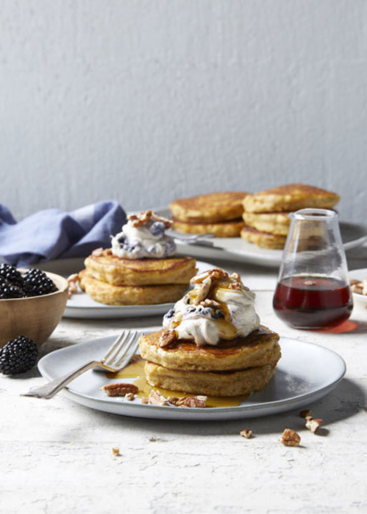 Pumpkin pancakes with blackberries