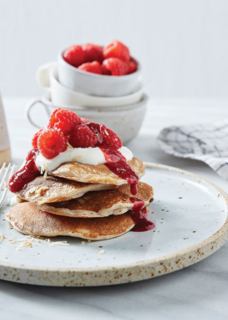 Raspberry coconut pancakes