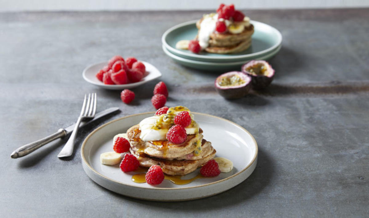 Serve topped with a dollop of yoghurt, sliced banana, passionfruit and a few extra raspberries. If you’ve got a sweet tooth, drizzle with a little maple syrup.