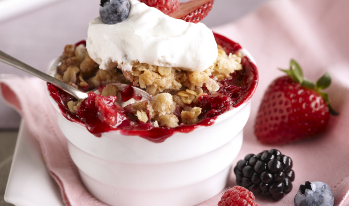 Four different berries make a juicy, traditional dessert that's best served warm from the oven. Leftovers can be reheated briefly in the microwave. You can also use varying combinations of berries if you like. Just make sure to use the same total amount of berries called for in the recipe.
