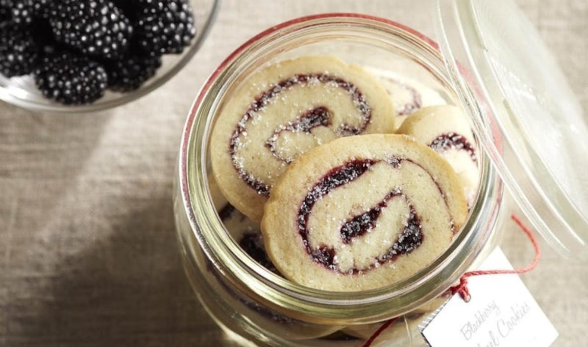 Dress up these almond-flavored sugar cookies with a simple cooked blackberry filling spiced with cinnamon and cloves. Almond blackberry cookies taste as good as they look and are easy to package in a jar or cellophane bag tied with a ribbon for a sweet gift.