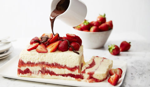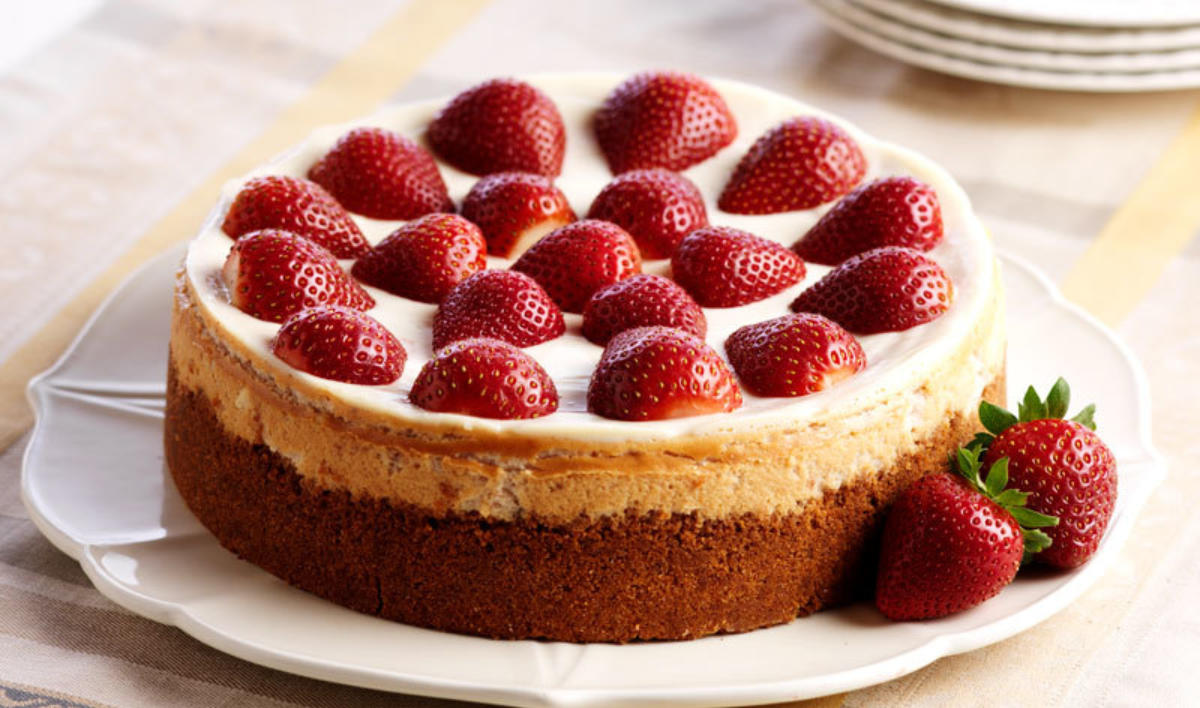 The classic strawberry cheesecake combo is always a crowd hit. Lighlty spread sweetened sour cream over the top of the cheesecake once chilled and add some fresh strawberries for a tasty finish.