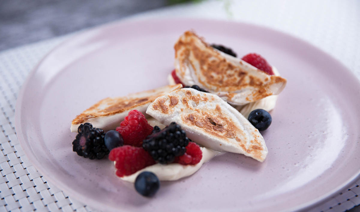 Take a typically savoury dish and turn this into a delicious oh-so sweet dumpling dessert! Mix in your favourite fresh berries and apple, then serve with a lemony mascarpone for that extra zing. Recipe by: Justine Schofield, Everyday Gourmet