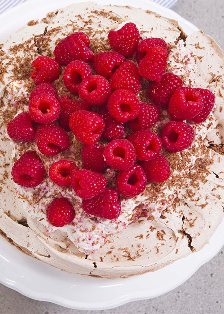 Choc raspberry pavlova sandwich