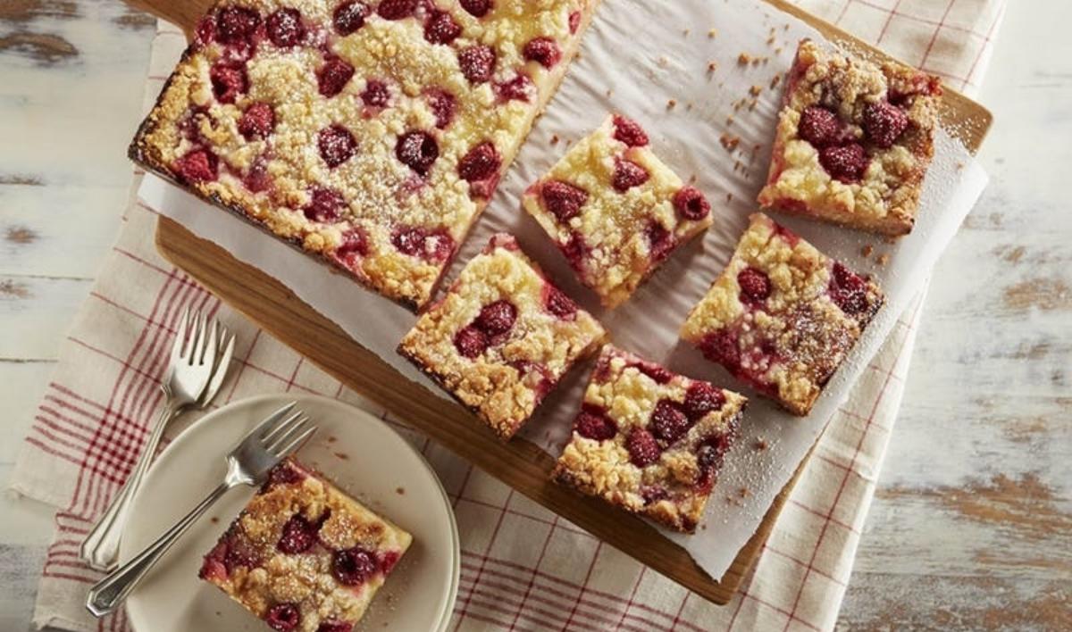Put the butter, sugar, salt and vanilla in a food processor and whir until the mixture is blended. Add the almond flour and blend until smooth. Add the flour and pulse, stopping as needed to scrape the bowl, until you've worked the flour into the other ingredients and have moist, bumpy curds of dough. Reach in—if the dough holds together when you pinch it, it's ready. Turn the dough out onto the counter and knead it gently to gather it together. Cut off one-third of the dough, cover it and set it aside. Press the rest of the dough evenly over the bottom of the lined pan. Prick the dough all over with a fork. Bake the crust for 15 - 18 minutes, or until it's pale golden all over. It will puff a bit and still feel soft to the touch, so judge its readiness by its colour. Transfer the pan to a cooling rack and let the crust cool to room temperature. If you've turned off the oven, heat it to 190°C again. Scatter 1 punnet of Driscoll's raspberries over the crust. Stir the chilled curd to get it moving then, using a long offset spatula or the back of a spoon, spread the filling evenly over the berries. Pinch off small pieces of the reserved dough and scatter them over the filling - you'll have enough dough to almost completely cover the curd. Turn the squares over onto a cutting board or counter, carefully peel away the parchment paper and invert the bars onto a plate so that they are right-side-up. Using a long, slender knife, cut the cake into 12 squares, about 3 inches on a side. Serve now or chill - the bars are delicious at room temperature, when the crust is almost as tender as the filling, and just as good chilled when all the elements are firm but the filling melts in your mouth. Dust with icing sugar, if you'd like, just before serving. Storing: Well wrapped, the squares will keep in the refrigerator for about 5 days; wrapped airtight, they can be frozen for up to 2 months. Defrost the squares, still wrapped, overnight in the refrigerator.