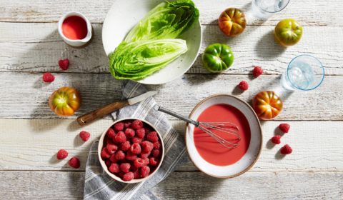 To prepare raspberry sauce, place raspberries, icing sugar and lemon juice in a small saucepan and cook over low-medium heat for 2–3 minutes, until berries collapse to a thick pulp. Strain through a fine mesh sieve and set aside to cool. Refrigerate until required.