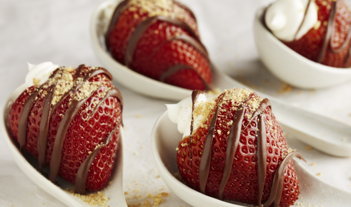 Line a baking tray with baking paper. Cut top off each strawberry and core out center with a melon baller. Place on lined baking sheet and set aside.