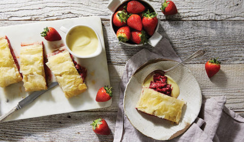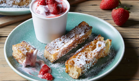 Serve dusted with icing sugar, a dollop of vanilla yoghurt and a few extra strawberry slices. Drizzle with a little maple syrup, if desired.